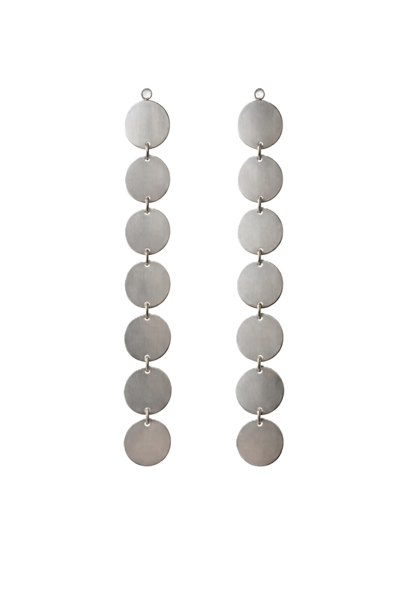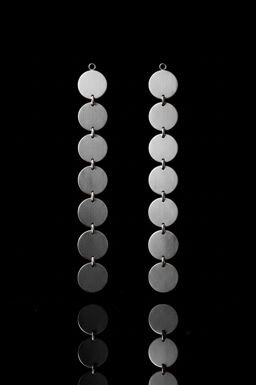 Diese langen Ohrhänger aus 960 Feinsilber entstehen vollständig in Handarbeit – ohne Guss, ohne Laser, ohne industrielle Abkürzungen. Jede Scheibe wird einzeln gefertigt, verbunden und ausbalanciert. Mit einer Breite von ca. 1,2 cm und einer Länge von ca. 10,2 cm entfalten sie eine ruhige, kontrollierte Bewegung mit spürbarer Präsenz.